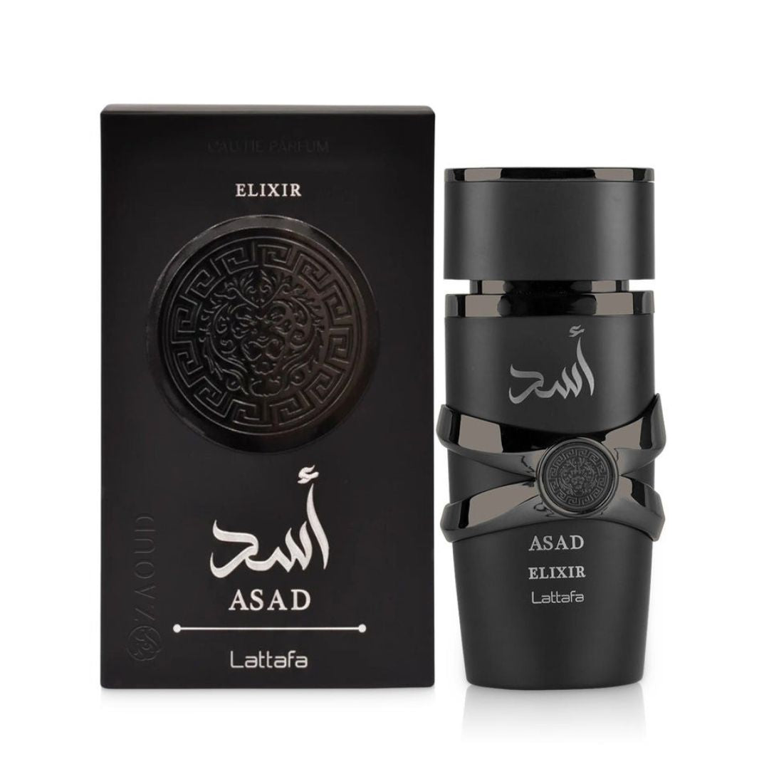 Asad Elixir Eau De Parfum is a powerful and refined fragrance that blends spicy freshness, rich gourmand warmth, and deep woody accords for an intense and luxurious aroma. Presented in a 100ml bottle, it delivers long-lasting performance, making it ideal for confident individuals who enjoy bold and sophisticated scents.