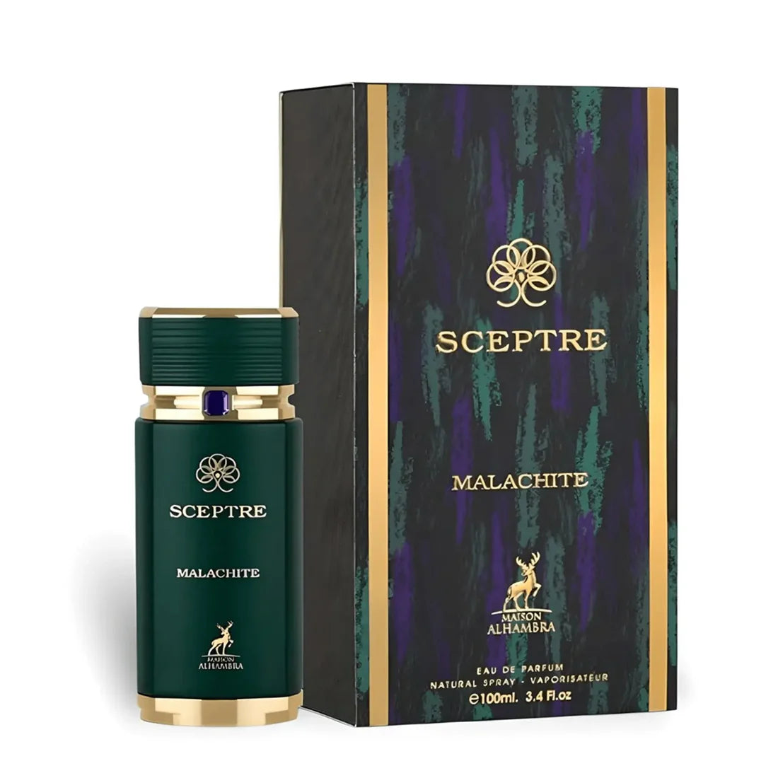 Sceptre Malachite opens with bright green tangerine, bergamot, and black currant, flowing into a heart of aromatic and spicy notes with lavender, pink pepper, and jasmine. It settles into a rich base of amber, musk, woodsy notes, and vetiver, leaving a refined, elegant, and long-lasting scent trail.